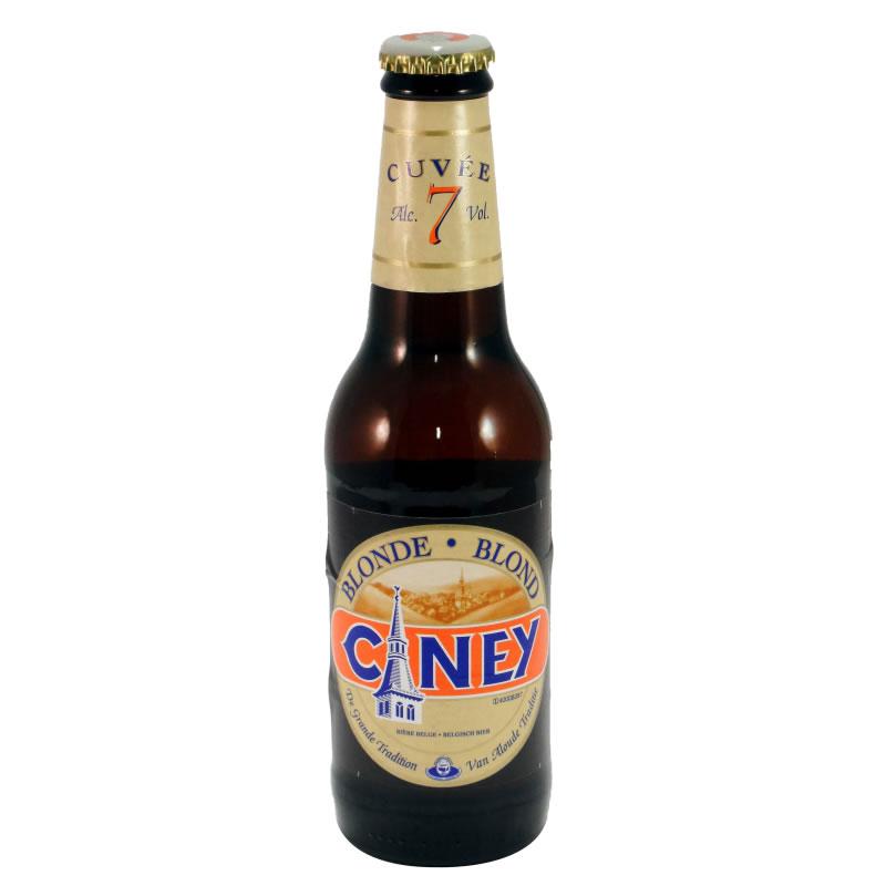 Caractéristique : C'est une bière qui offre à la vue une jolie robe dorée accompagnée d'une mousse blanche et consistante. La Ciney Blonde libère dans le nez des arômes maltés et fruités très agrables. En bouche, cette Ciney apparait particulièrement bien équilibrée entre les saveurs fruitées des malts et l'amertume franche du houblon utilisé par le brasseur.